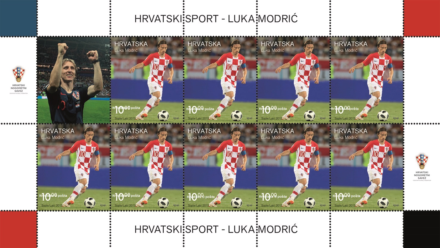 Zagreb, 22. ožujka 2019. – Hrvatska pošta pustit će u optjecaj 25. ožujka prigodno izdanje poštanske marke „Hrvatski sport – Luka Modrić“. Najtrofejniji kapetan hrvatske nogometne reprezentacije svojim je trudom i zalaganjem osim brojnih prestižnih strukovnih nagrada zaslužio i ovo rijetko priznanje.
