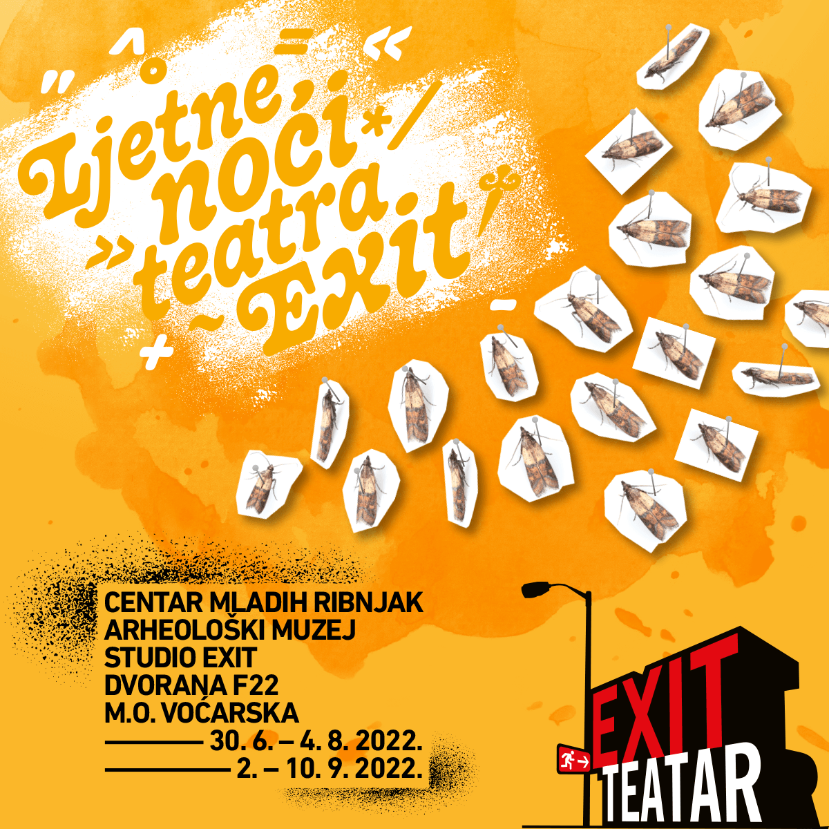 13. po redu Ljetne noći Teatra EXIT održat će se i ove godine u dva dijela. Prvi dio trajat će od 30. lipnja do 4. kolovoza, a drugi dio od 2. do 10. rujna. Ove godine manifestacija se neće, kao do sada, održati u Muzeju za umjetnost i obrt zbog njegove sveobuhvatne konstrukcijske obnove, ali zato smo za našu publiku pronašli nove prostore u kojima će moći uživati u izvrsnim predstavama pod noćnim nebom.